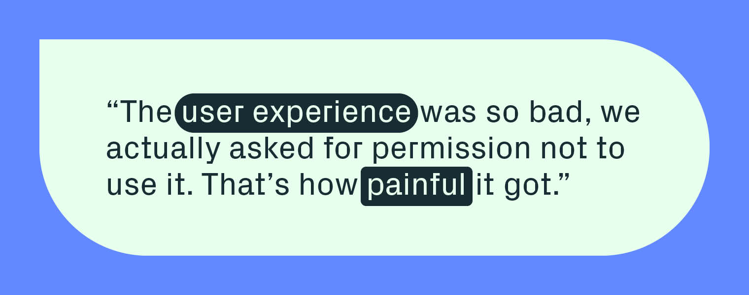 “The user experience was so bad, we actually asked for permission not to use it. That’s how painful it got.”